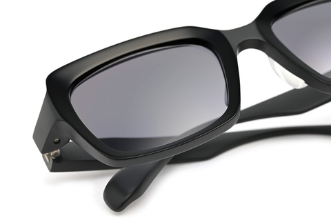 カラーレンズはcol.001M、col.840Mは可視光線透過率46%のグレー、やや目が見えるほどの濃度に抑えたことで普段のコーディネートに取り入れやすいかと。