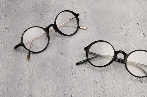 レトロシリーズのラウンド型といえば、メタルパーツとのコンビ枠「RF-051」が代表的ですが、オーバーサイズで掛けこなす丸メガネというよりも、女性の皆さんがジャケットサイズで掛けこなせるサイズ感となっています。