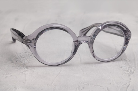 ラウンドシェイプを引き立てるチューブ状にカタチづくられた造形が、より個性を引き立てます。もともと、モード感漂う「RF-013」ですが、メガネとしてクリアグレーを掛けると、どこかフユーチャーリステックな印象を受けました。ワタクシ自身、掛けこなしは難しく、スタイリングは少々ハードルが高く感じました。もし、可能であればレンズに25%前後の淡いカラーを組み合わせことで、適度なメリハリが生まれ、ぐっと掛けやすくなるかと思います。