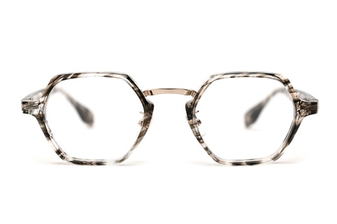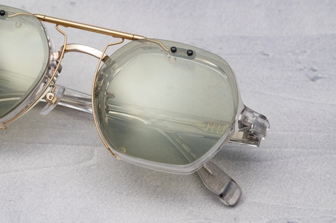 もともと六角形という特徴的なシェイプの「RF-057」ですが、クリップオンサングラスを付けることでツーブリッジデザインになり、これがまた絶妙なバランスです。