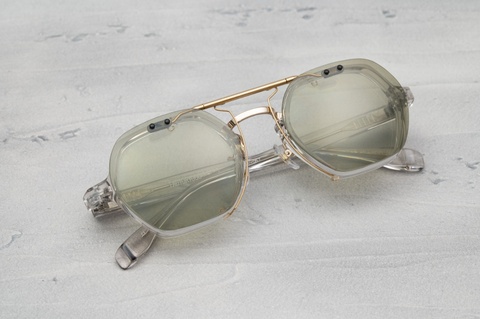 フレームカラーがクリア系のカラーということもあり、レンズはカラーバリエーションの中では比較的薄いシャンパンゴールドをチョイス、見た目のバランスを取りつつ使い勝手の良い仕上がりになったと思います。
