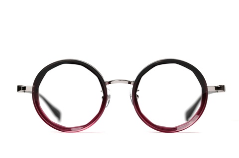 ご覧のように、実際に掛けてみると全くクセを感じることなくお顔に馴染みます。先にご紹介した「col.001」に比べると見た目の強さはさらに和らぎ、むしろ色気さえも感じさせる独特な色合いです。もう少し掘り下げていうと、テレビジョンカットになることで生地が薄くなり、赤紫の色合いがしっかり出ることも「RF-058」の構造ならではといえます。