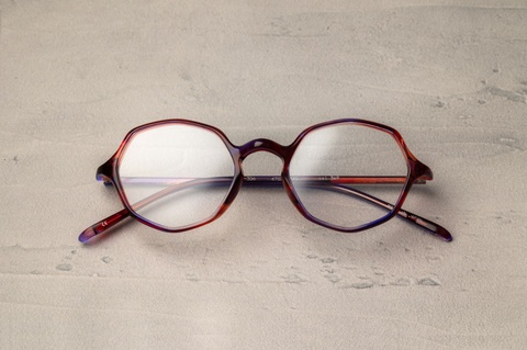 通常のレトロシリーズとは異なる繊細で軽やかなフォルムが今の時代感にも取り入れやすく、さらにいうなれば、前回ご紹介した丸メガネの「RF-305」よりも個性が出せる「RF-306」はファッションセンスを引き出せる大きなアイテムになり得るかと思います。今回、松本がピックアップした「col.369」(赤紫)も、一般的なクラシックフレームではあまり見られない先鋭的な色使いですが、メガネだけが浮いて見えることなく、掛けこなせていると思います。