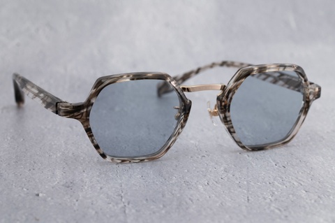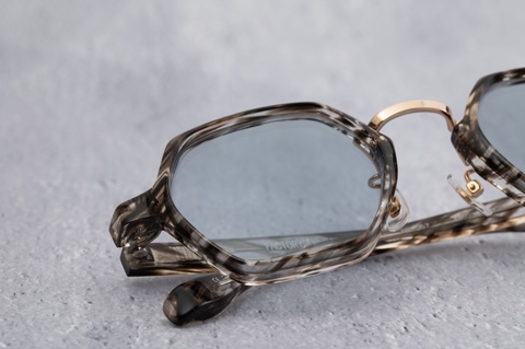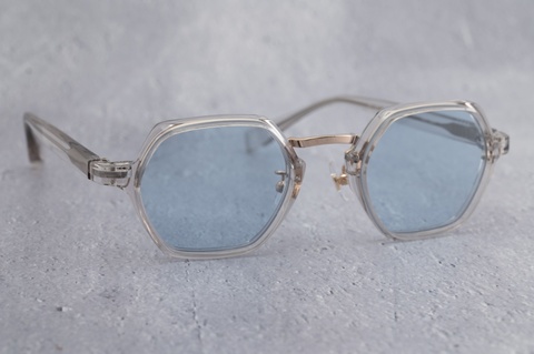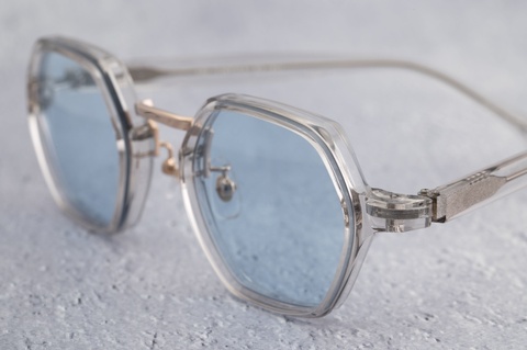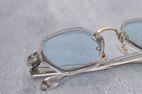 こちらのブルーは濃度29%とサングラスとしてはかなり淡いカラーレンズになりますが、もちろん50%前後のカラーレンズを組み合わせても問題ありません。ただし極端に濃度の濃いカラーレンズになると、特徴的な六角形のシェイプが際立ち、個性が強めのサングラスになるので、女性の皆さんは注意が必要です。