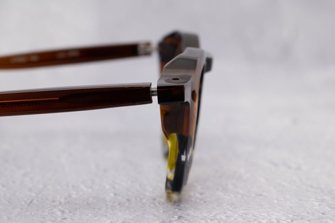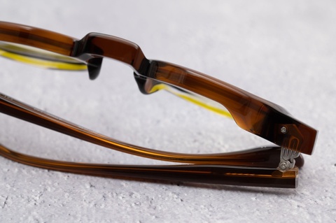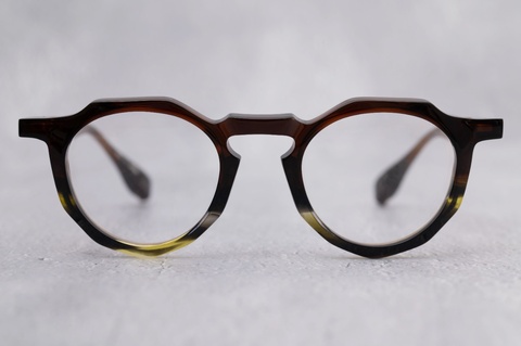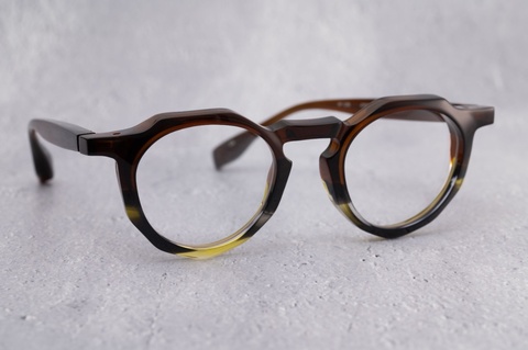 なかでも人気のカラーがこちらの「col.313」(ビール茶/グリーンササ)、オリジナルのツートンカラーになりますが、直営店をはじめ海外でも人気のカラーですね。実際に掛けた印象もご覧ください。