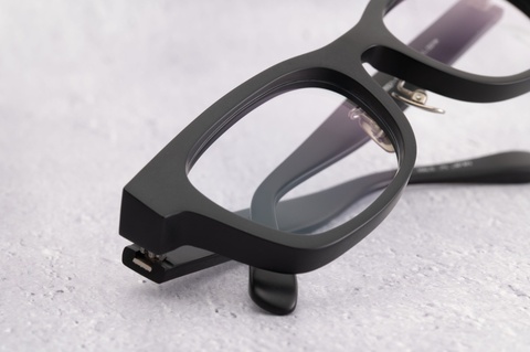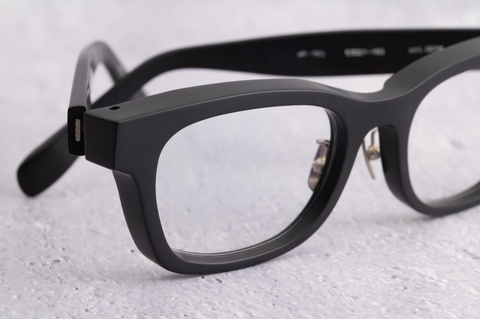 肉厚で存在感のある「RF-150」ですが、他のマット仕様と同じく、マット加工を施すことで肌馴染みが良くなり、落ち着いた印象を与えることができることも1つの特徴となります。キハクやクリアといった抜け感のあるカラーが増えつつも、いつの時代でも決してなくなることのない「col.001」(黒)、そんな「col.001」を特別なマット仕様で楽しみたいという皆さんは、スタッフまでお気軽にご相談ください。