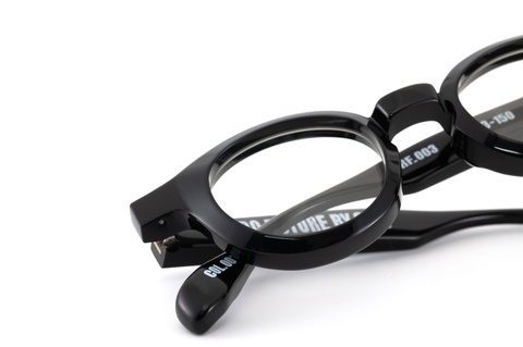 肉厚なフロントから繋がる箱型のようなテンプル、複雑な面カットはあえて用いらず極力シンプルに、50年代~60年代のモノづくりを彷彿とさせるそのディテールは、古き良き時代を思い起こしてくれるような懐かしさと温かみを感じ取っていただけるかと思います。
