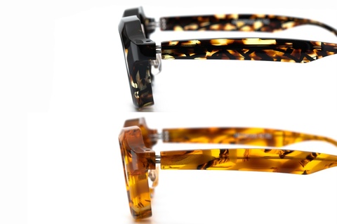 どの角度から見えても美しい色合いですが、生地本来の柄を見極めるのであれば、フロントよりも厚みを抑えたテンプルをご覧いただけると分かりやすいかと思います。