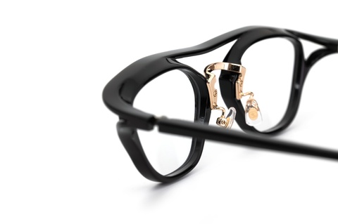 ご覧のように、アセテート素材でこのような立体感をカタチにすること自体、一般的には不可能と思われるほどの難解な構造、まさに過去に工場として請け負った仕事(OEM)から得た経験はもちろん、大文字シリーズや小文字シリーズで培った技術力があったからこそカタチになったといっても過言ではありません。
