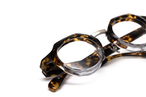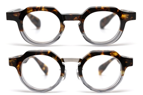 「RF-053」の人気カラー「col.132」(濃茶柄)の発色が決定したことで、最近のブログでも度々取り上げる機会が増えましたが、この「col.165」(バラフツートン)も人気のカラーになります。FACTORY900らしい肉厚なリムを繋ぐブリッジのメタルパーツも、通常のコンビネーションフレームにはない重厚なパーツを一から設計し、より武骨で堅牢なイメージに仕上がりました。