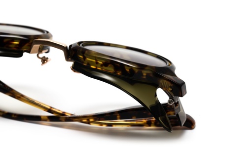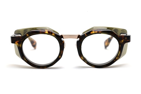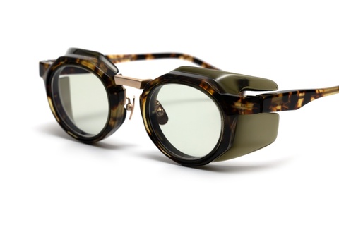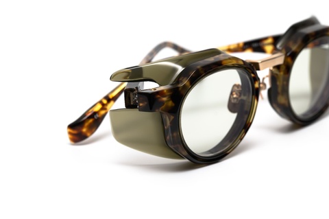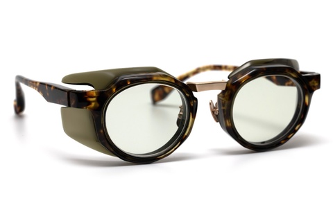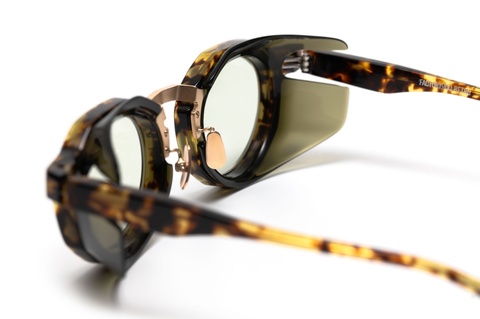 つい先日も、「RF-056」col.001-853: black-white (黒-白)に濃度79%のカラーレンズを組み合わせ、サングラスとしてお求めいただきましたが、今回は濃度の淡いカラーレンズをチョイスし、見た目の厳つさを和らげる効果を狙いました。