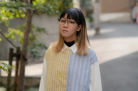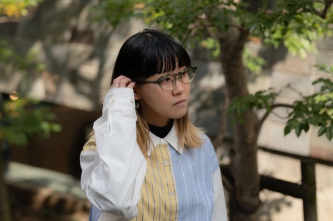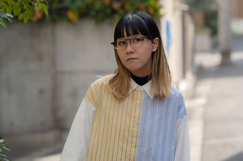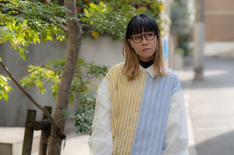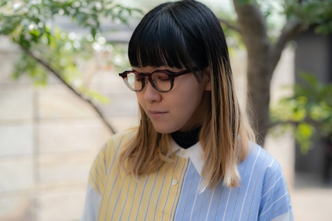 このように、自然光のもとでもお顔に乗せると肌色と混じりあい程よい色合いに。グレーとのツートンカラーによって目元も暗くなりすぎず、女性の皆さんにもオススメです。この機会に黒縁に挑戦してみたい!そんな皆さんには是非お試しいただきたいカラーになります。