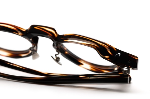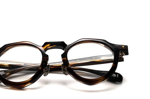 「RF-030番台」の新たな特徴である”フロント面に2つの異なる厚み”はそのままに、レンズの天地幅は40mmと「RF-030番台」のなかでは最も広く、レンズシェイプは、クラウンパントをベースにしたFACTORY900らしい多角形型になります。