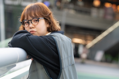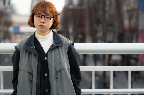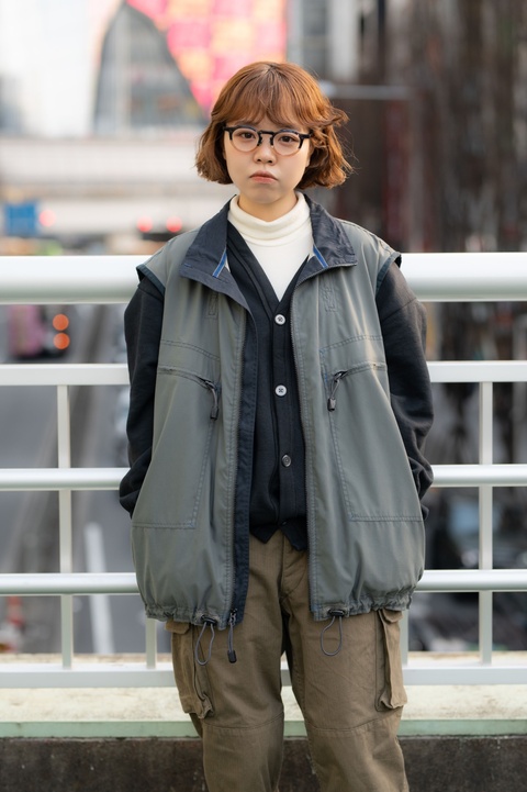 今日はカラーバリエーション全5色のなかから、人気が予想されるカラーと、新色カラーをピックアップし、実際に掛けた印象をご覧いただこうと思います。今回は、アパレルにお勤めのMさんにスタイルサンプルになっていただきました。