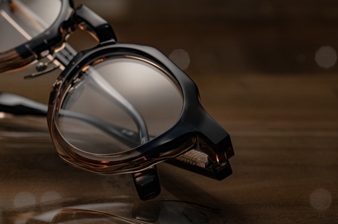 一般的なクラシックフレームではそう見られない、ある意味FACTORY900らしい新色の「col.874」は乳白とササ柄のツートンカラーになります。 彩度の高い鮮やかな色合いではなく、もしろ落ち着きのあるカラーでありながらしっかりと個性のあるツートンカラーは、その使い勝手の良さも含め、注目のカラーになります。