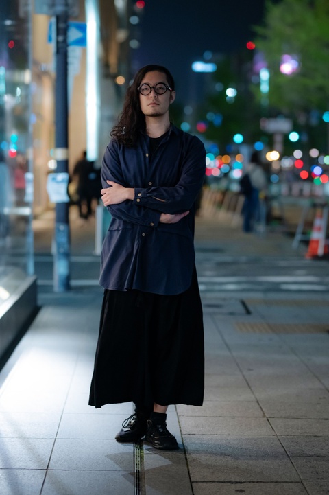 丸みを帯びたチューブ状のフロントリムがそのままテンプルまで繋がる美しいフォルム、世に数多く存在する”丸メガネ”とは一線を画す、まさにFACTORY900らしい造形美が楽しめるラウンド型。モードな装いにもハマりやすく、その世界観によってクリエイティブな印象を演出します。前回の大阪出張の際に、お時間をいただき撮影をさせていただきました。