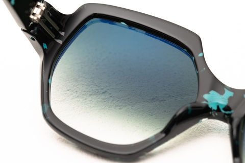 ちなみに今回チョイスした「col.524」(グリーンバラフ)ですが、実際に掛けてしまうと、グリーンの柄は肌に馴染みほぼ黒のように見えます。レンズのパイオニアに関しても写真を見る限り、その色合いはほとんど分かりにくいかと思います。