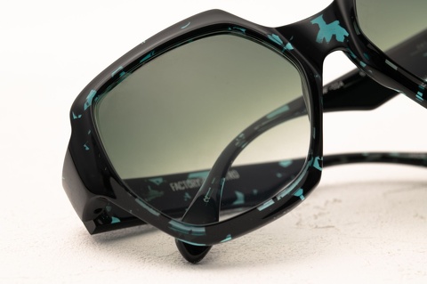 レトロな雰囲気を漂わせるサイズ感と、未来感のある変則的なレンズシェイプによってデザインされた、FACTORY900らしいサングラスコレクション。基本こちらのcol.524(グリーンバラフ)には、フルカラーのカラーレンズを装備していますが、グラデーションのカラーを組み合わせることで、見た目の印象が変化することは、先日のブログでも触れた通りです。