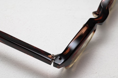 「RF-007」は、当初からクリアレンズを標準としたメガネとして発表しておりますが、個人的には、この独特なシェイプとサイズ感からサングラスとしてのご提案する機会が多く、特に今回ピックアップした「col.148」(ブラウンツートン)にカラーレンズの組み合わせは、今でもすこぶるカッコイイと思っています。