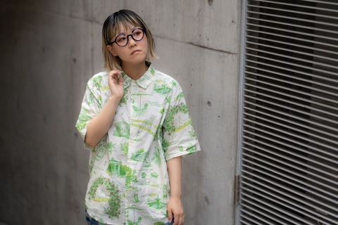 ソリッドな3色に比べ、圧倒的に肌色に馴染み、リムの一部を切り離した特徴的なデザインも含め、顔馴染みが良くなったことでクセも少なく、むしろインナーリムのゴールドによって、どこかラグジュアリーな印象に。おそらく好き嫌いがハッキリ分かれるカラーになりそうですが、この暑さの厳しいこの季節にピッタリとハマりそうなカラーです。