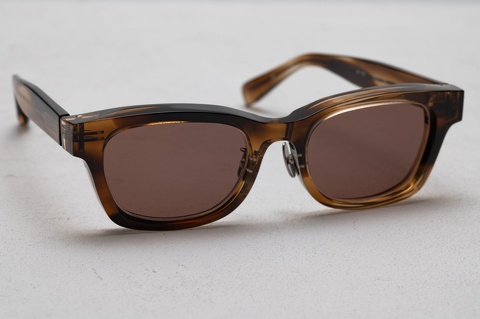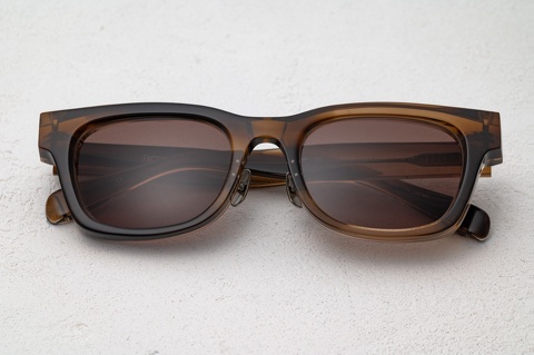 カラーレンズは、濃度84%のブラウン。フレームカラーの”茶ササ”と同系色ということもあり、非常に一体感のあるサングラスに仕上がりました。レンズカラーのブラウンは、ご自身からの見え方・色合いに関して、好き嫌いハッキリと別れるカラーになりますが、サングラスといえばグレーと同じく定番のカラーになります。
