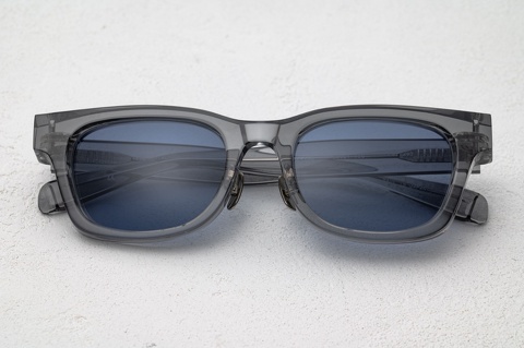 カラーレンズは、今回ご用意した3色のなかで最も薄い濃度76%のブルー。実際に掛けた印象を見ると、目の表情がうっすらと分かる濃度です。肉厚な「RF-150」ですが、フレームカラーもクリア系のブルーグレイということで重厚感が適度に和らぎ、まさにこの夏におススメのカラーになります。