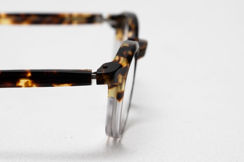 個性の強さは極力抑え、クラシックフレームが初めての皆さんにも気負わず掛けていただけるようなシンプルなデザインです。とはいえフロントには面カットを施し、凹凸のあるブリッジからは立体感が感じ取れます。スタンダードコレクションといいながらも「RF-300番台」とは異なるディテールの作り込みは、この「RF-030」でもしっかりと表現されている訳です。