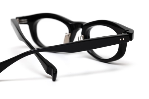 また、「RF-040番台」の特徴であるメタル素材の装飾ですが、テンプルと丁番を繋ぐパーツに昔ながらの”カシメ鋲”を用い、先鋭的なデザインのなかにも古き良きテイストを交え、FACTORY900ならではのクラシックスタイルが確立します。
