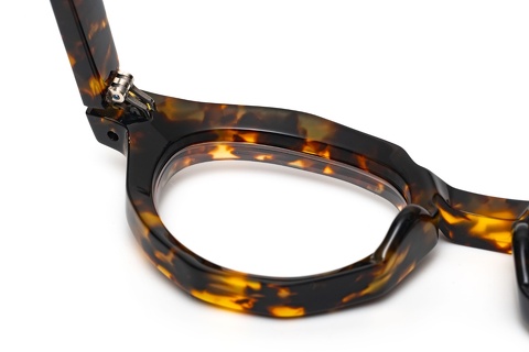 クラシカルなデザインでは定番といえるボストン型・クラウンパント型・ウェリントン型のどの形にも該当しない多角形を思わせる独特のシェイプ、そして直線的でエッジーな面造形から、FACTORY900らしさが感じ取れます。