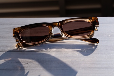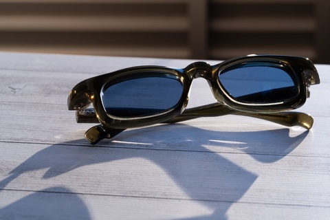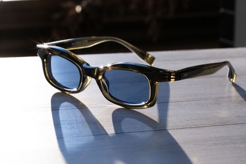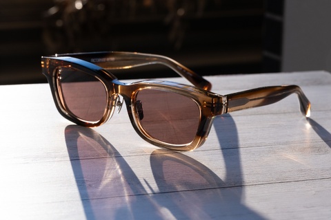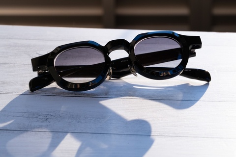 そう、過去のブログでも触れたように、本格的な冬を迎えるこれからの季節、夏に比べて日差しは弱まるものの、太陽の位置が低くなることで日差しが目に入りやすく眩しさを感じやすくなります。そこで今日のスタッフブログは、夏にもおススメしたレトロシリーズのサングラスを冬の装いに合わせてご紹介させていただきます。今回はこの季節の日差しに合わせ屋外で物撮りをしてみました。自然光のもとで映えるアセテートの質感もお楽しみください。