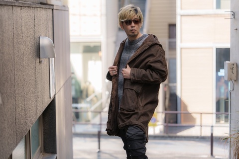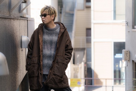 ワタクシ自身も「col.001」(黒)をメガネとして使用していましたが、今回はコートの色に合わせ「col.321」(茶ササ)をピックアップしてみました。個人的にブラウンのサングラスはホントに久しぶりとなり、スタイルサンプルといえどなんだか新鮮です。