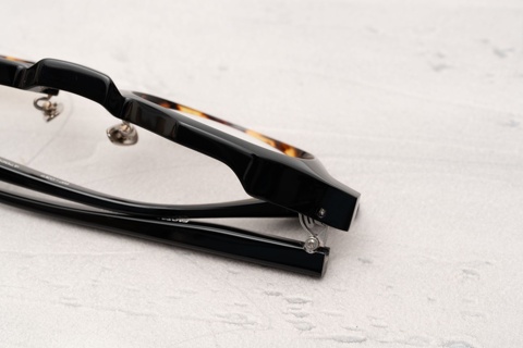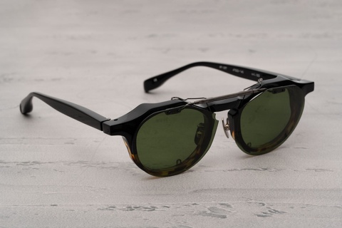 今回は、「RF-037」col.022(黒/バラフ ツートン)に、レンズカラーがグリーンのクリップオンサングラスを組み合わせてみました。