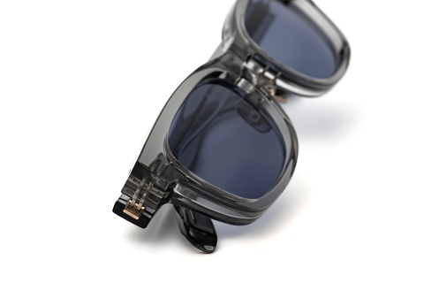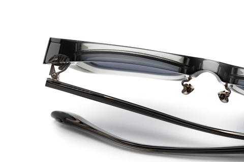 立体感を表現するブリッジ周辺の凹凸やフロントの面カットを省いたフラットなフロント、これによってエッジの効いたラインがより強調され、重厚感のある肉厚なモデルでありながらシャープでスッキリとした表情を作り出します。とはいえ、ボリューミーで存在感の強い「RF-150」は、定番のウェリントン型とはいえ、その印象が強すぎると感じられるみなさんもいらっしゃるのでないでしょうか。