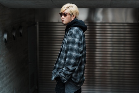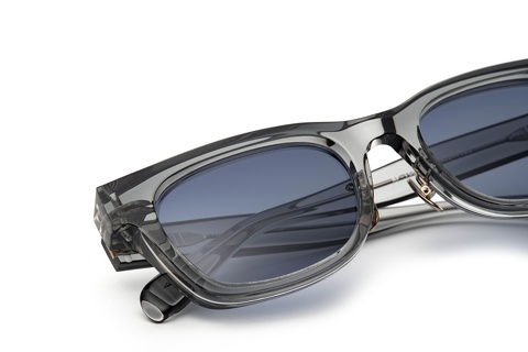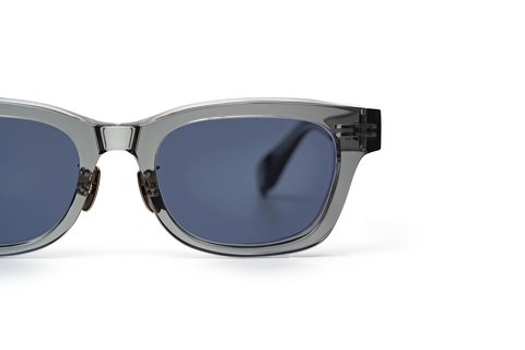 カラーレンズは濃度76%のブルー。実際に掛けた印象を見ると、目の表情がうっすらと分かる濃度です。黒縁にブルーのレンズの組み合わせは、もはやこの数年で人気を通り越し定番となりましたが、もちろん「col.493」(ブルーグレー)との相性も間違いありません。