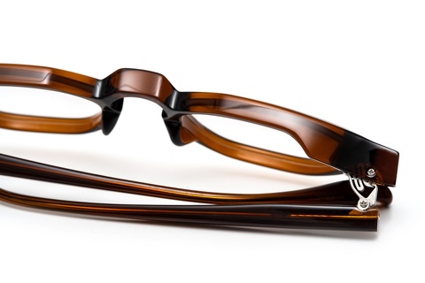 クラシカルなデザインでは定番といえるウェリントン型ですが、この変則的なシェイプからも青山らしさが感じられます。