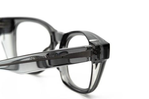 そして、その重厚な見た目とは裏腹に、極厚のフロント裏側を大胆に肉抜きすることで軽量化を図り、より実用的なメガネとして皆さんの日常に溶け込みます。もちろん、お顔の大きさや骨格によって相性の良し悪しがあり、その効果にも差が出ますが一般的なメガネに比べると花粉や埃除けとしての効果は期待できます。