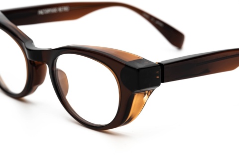 今日ご紹介する「RF-110」「RF-111」は、2020年から世界的に感染が拡大したいわゆるコロナ禍において、FACTORY900ならではのゴーグル形状を活かし、飛沫対策の1つとしてデザインしたモデルになります。その特徴的なデザインが結果として花粉除けとしての効果が期待でき、さらに今の時代感を反映させた両品番は、より日常使いを意識したモデルです。しかし、その製造工程における難易度高く、歩留まりも悪いことから、残念ながら昨年春に生産終了となりました。