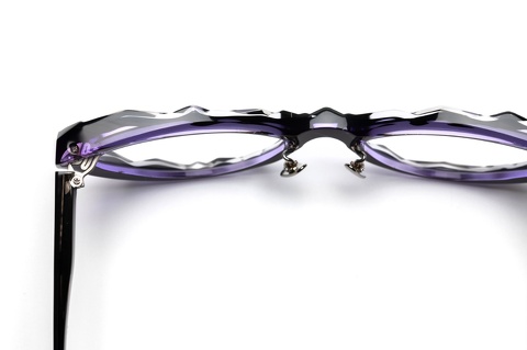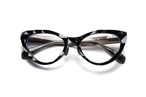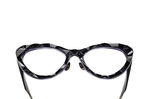 掛けこなしのハードルも高さもあってか、国内ではどうしても賛否の別れるフォックス型ですが、その分ハマる方には根強い人気があり、この「RF-66」に関しては、特に欧米・ヨーロッパの地域ではメガネ、そしてサングラスとしても人気のモデルになっています。なんといってもその特徴はフロントの前面に施した光り輝くダイヤモンドパターン。フォックス型ならではのシルエットと相まって非常に色気のある仕上がりに。