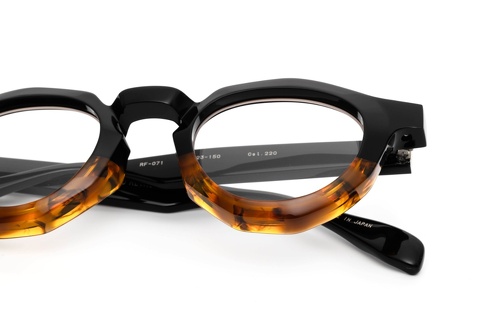 レトロシリーズを代表する人気モデル「RF-001」と同様、クラウンパント型の「RF-070」ですが、意外に見落としがちですがそのサイズ感も大きな特徴です。いわゆるフレンチテイストと呼ばれるデザインよりもやや大きく、結果的にこの違いが掛け心地にも反映されます。これのサイズ感に関しては、「RF-071」にも同じことがいえ、一般的なボストン型とは異なるサイズ感です。