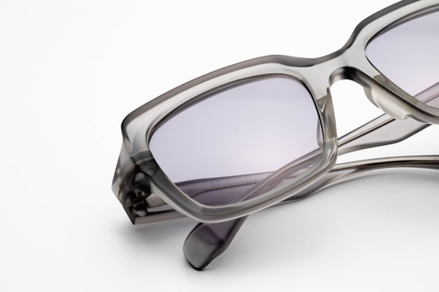 今回はあえて「col.840M」(クリアグレーマット)をチョイスしてみましたが、カラーバリエーション全3色ともに人気です。「RF-024」とは対照的なエッジーでフラットな面造形を用いシンプルなデザインになっているため、ビッグシェイプとはいえスタイリングにも取り入れやすく、ゴリゴリのモードスタイルだけでなく、ストリートファッションにも合わせやすいデザインが人気の理由の1つかと思います。