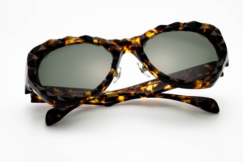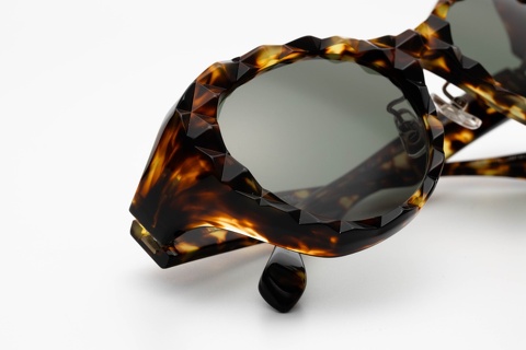 一歩間違えると野暮ったく見えてしまいがちなビッグシェイプのサングラスですが、むしろラグジュアリーブランドを思わせる高級感が感じ取れます。これこそ細部までこだわり抜いた面造形による立体感と、アセテートの美しさを際立てる研磨技術の高さによってプロダクトとしての質感、そして完成度を高めています。