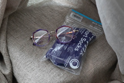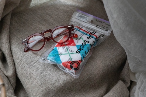確かに、靴下のカラーや柄をワンポイントとして、オシャレを楽しみ遊んでいる方は多いですよね。私も、お洋服が真っ黒のため、靴下や帽子や鞄などをアクセントとして色を楽しみながら、眼鏡もリンクさせています。