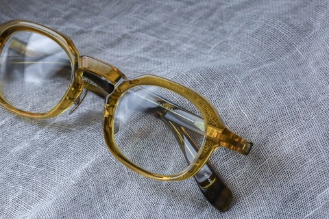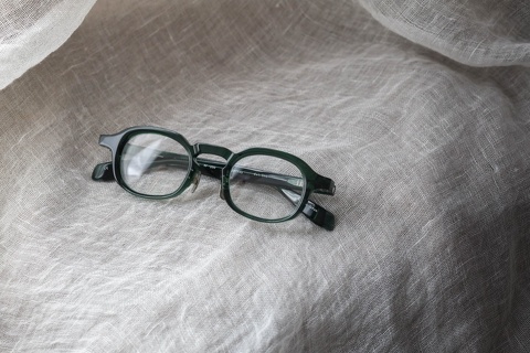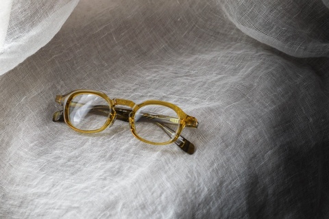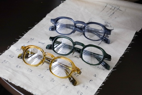 先に申し上げた通り、こちらのモデルの人気は、なんと言ってもカラー。”グリーン・ブルー・イエロー”、どのカラーも同じぐらい注目されています。フレーム単体で見ると、発色の良さから難しいのではないかも感じられる方も多いと思いますが、実際にかけていただくとお顔に溶け込み、良いアクセントとしてスタイリングに華を添えてくれます。また、逆にシンプルがゆえに物足りないように思われる方にも一度かけていただきたいフレームですね。細かなこだわりの面造形は唯一無二のカタチとなっていて、ブリッジが少し上についていることから、一癖あります。そこに加えて、このカラーリングが、それぞれ、いろんな印象を変え与えてくれます。
