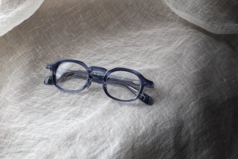 形の話をいたしますと、レンズシェイブがとても面白く、一見シンプルにも見えますが、「おにぎり」のようにも見える、変則的な不思議な玉型になっています。比較的小さめなサイズながら、お顔サイズを選ばないことからも人気のモデルです。フロント表面に内面カットをうっすら施し、でもそれが絶妙なスパイスとしてじわじわと効いています。ここ最近こだわっている引き算の面の造形ですが、このちょっとしたシンプルさも青山眼鏡ならではの造形美となっています。