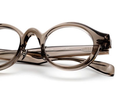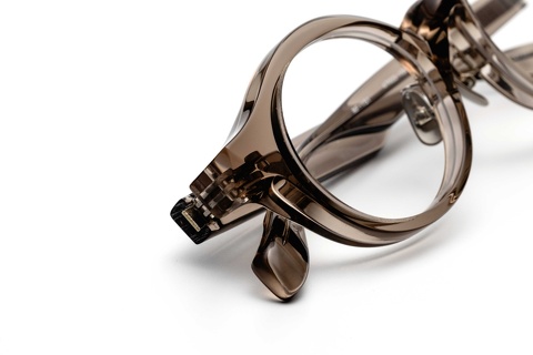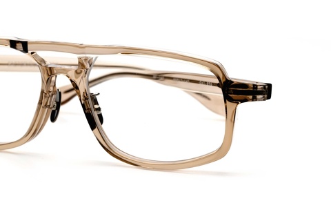 レトロシリーズのなかでクリア系のカラーといえば、「col.880」(キハク)が先ず最初に頭に浮かびますが、近年では特徴的なモデルに肌馴染みの良い色合いが採用されています。ソリッドなカラーに比べ圧倒的に顔馴染みが良くなることでそのデザイン自体のイメージも大きく変わることから、今日はスタイルサンプルも交え、2つのモデルをご紹介させていただきます。