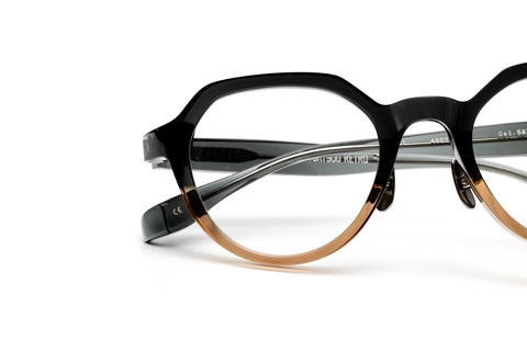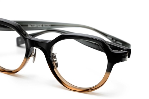 「RF-080番台」はフロントに薄いテレビジョンカットを施すことでエッジが強調され、シンプルな造形でありながら一般的なクラシックフレームとは一線を画すFACTORY900ならではのデザインです。レンズシェイプもフレンチテイストなクラウンパント型になりますが、サイズ感も含めなかなか他にはないスタイルといえます。
