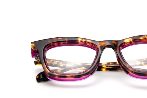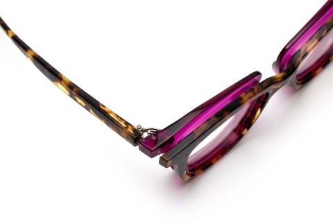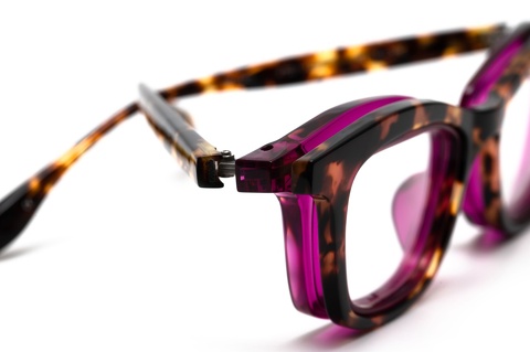 なんといっても独自の技術を活かしカタチになった構造体はまさに唯一無二。薄いフロントパーツの背面に独立したパーツを組み合わせ、2つのパーツの間に隙間を作ることで、一枚のアセテートだけでは表現できない奥行きと立体感が生まれます。