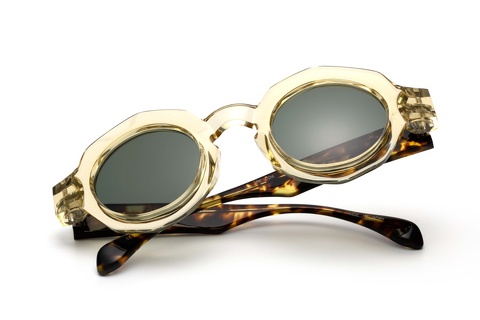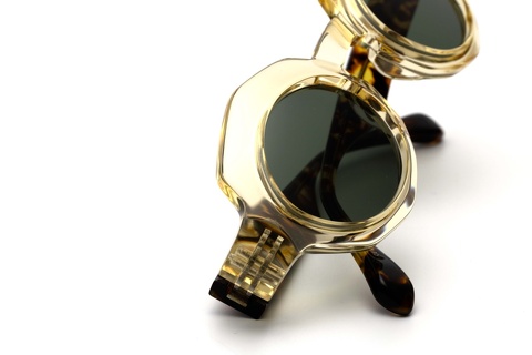 事実、海外の展示会では「RF-026」を基本サングラス仕様として展開していることもあり、今回は「col.880」(キハク)にグリーンのカラーレンズを組み合わたサングラス仕様をご用意しました。
