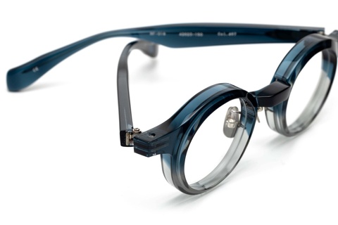 FACTORT900 RETRO初見の皆さんからすると、フロント・テンプルともに分厚く、いわゆる太セルに該当するかと思いますが、1st・2nd Collectionに比べると明らかな違いが見てとれます。過去のブログでは「RF-004」と「RF-018」の比較も行っていますので、こちらも是非ご覧ください。