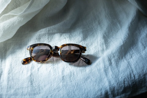 カジュアルにも、かっちりとした装いにもどちらにもハマるバラフ柄。落ち着いた形とカラーということもあり、濃いめのカラーを入れてサングラスにしてもとても使いやすいデザイン。サイズ感も程よいことから、女性にはハンサムに、男性にはリラックス感ある空気感に。